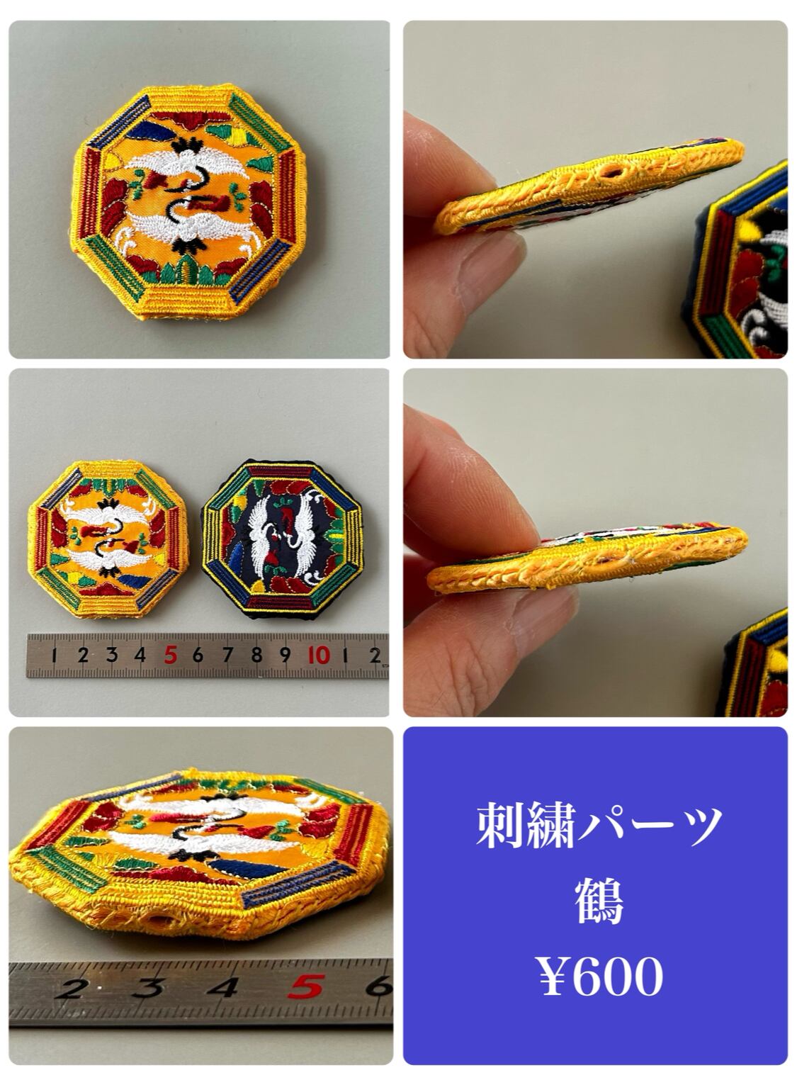 ◎鶴の刺繍パーツ4ケ