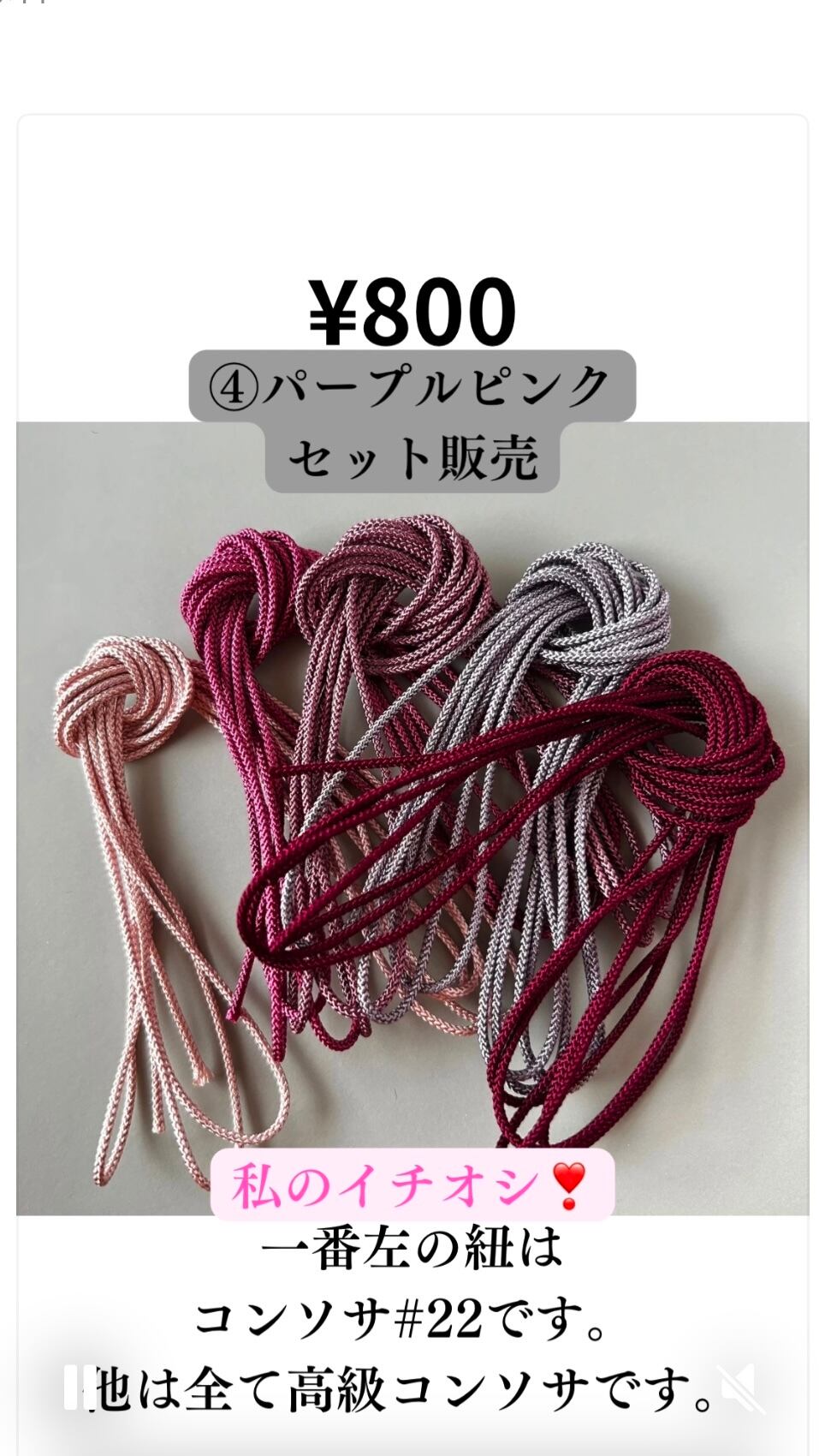 メドゥプ紐セット販売 ④【パープルピンク】高級コンソサ 各2m